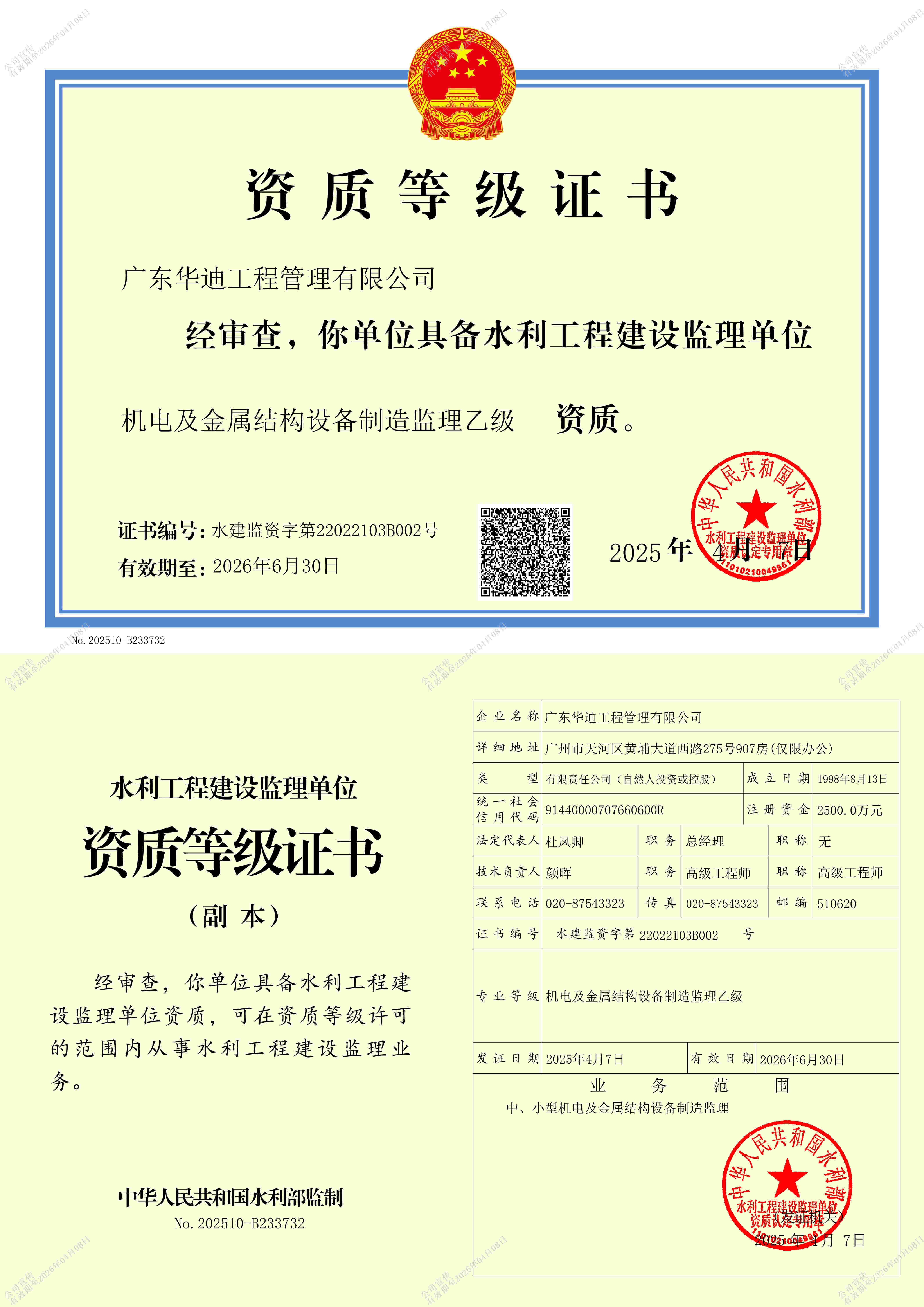承擔所有專業(yè)工程類別建設工程項目的工程監(jiān)理業(yè)務;承接各級水利工程、Ⅱ等及以下各等級水土保持工程的施工監(jiān)理業(yè)務;中小型機電及金屬結構設備制造、各類各等級水利工程建設環(huán)境保護監(jiān)理;